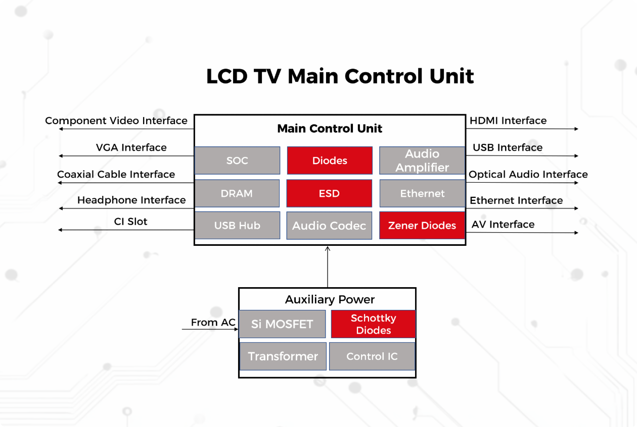 - Antenna/RF Interface: Receives terrestrial or cable TV signals.